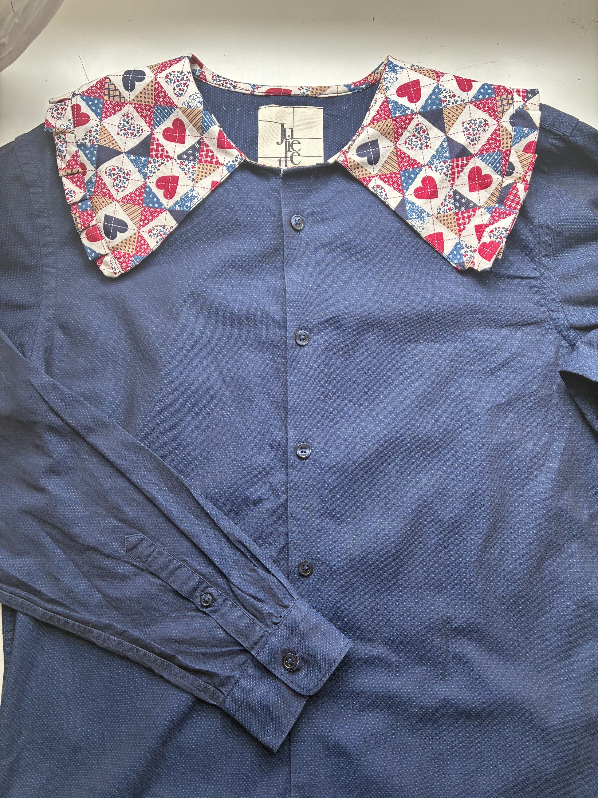 Chemise conçue à partir d’une chemise d’homme upcyclée et d’une jolie chute de tissu effet patchwork.💕✨