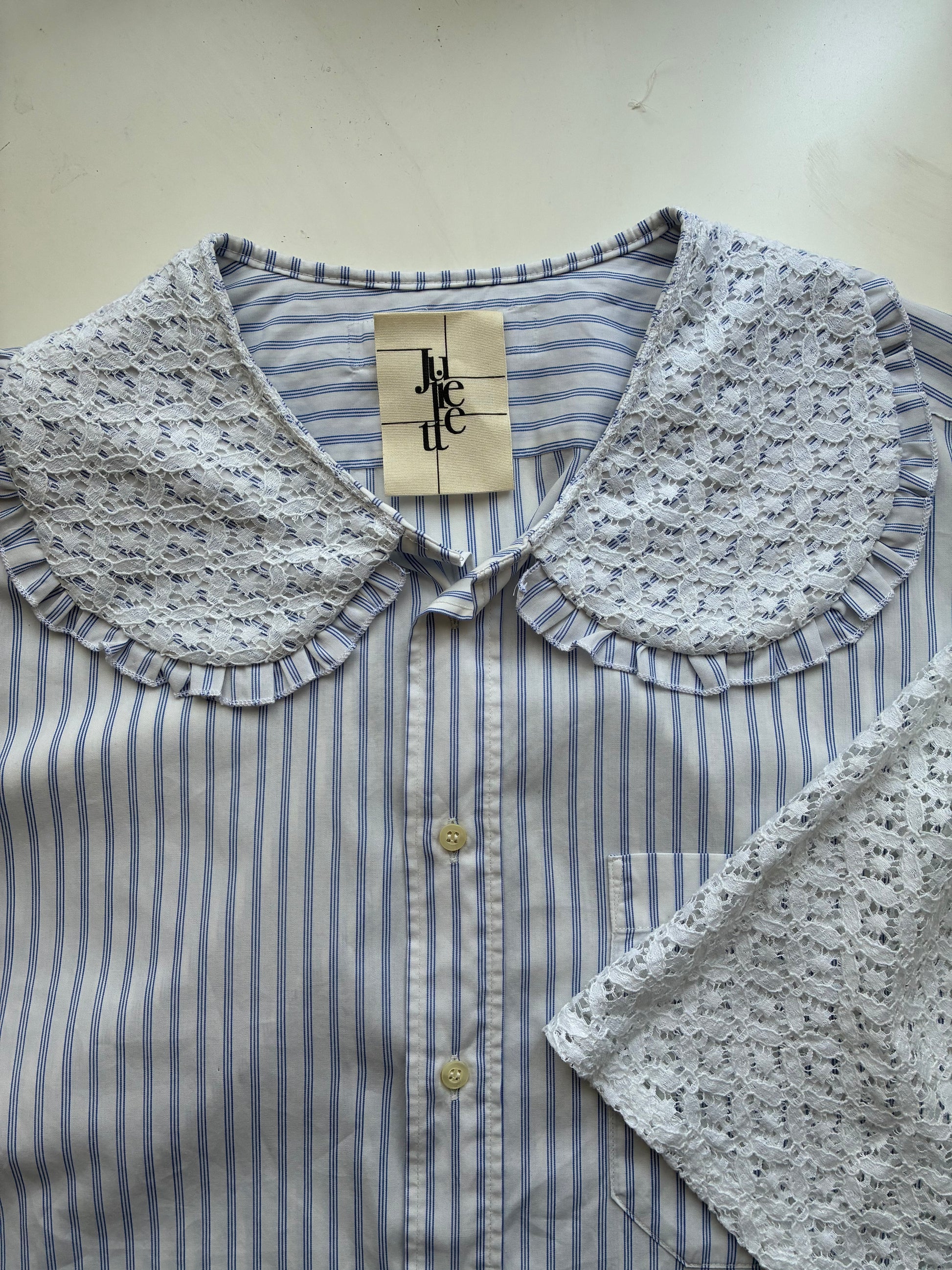 Col Claudine froufrouté, manches en dentelle offrant de la transparence.🪡🎀