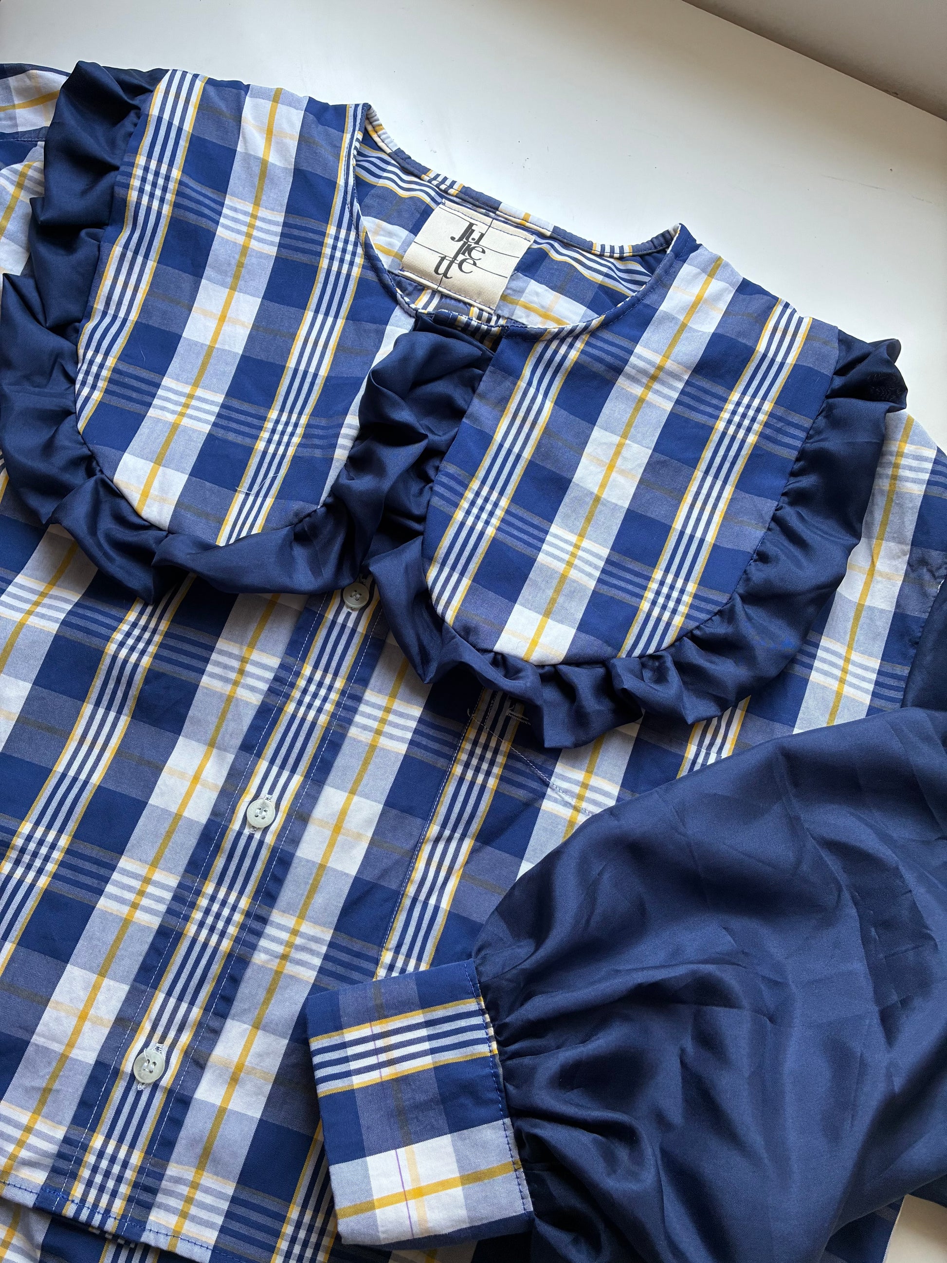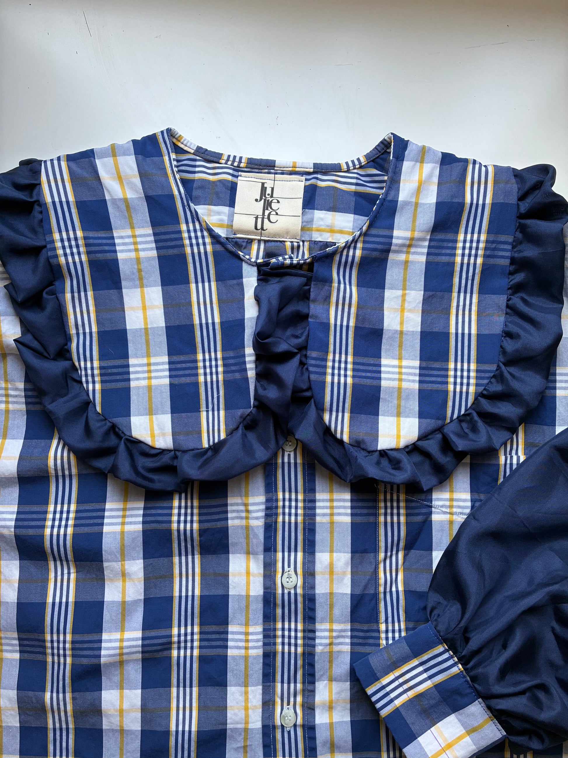 Col Claudine froufrouté, manches bouffantes en soie resserrées aux poignets.🪡🎀