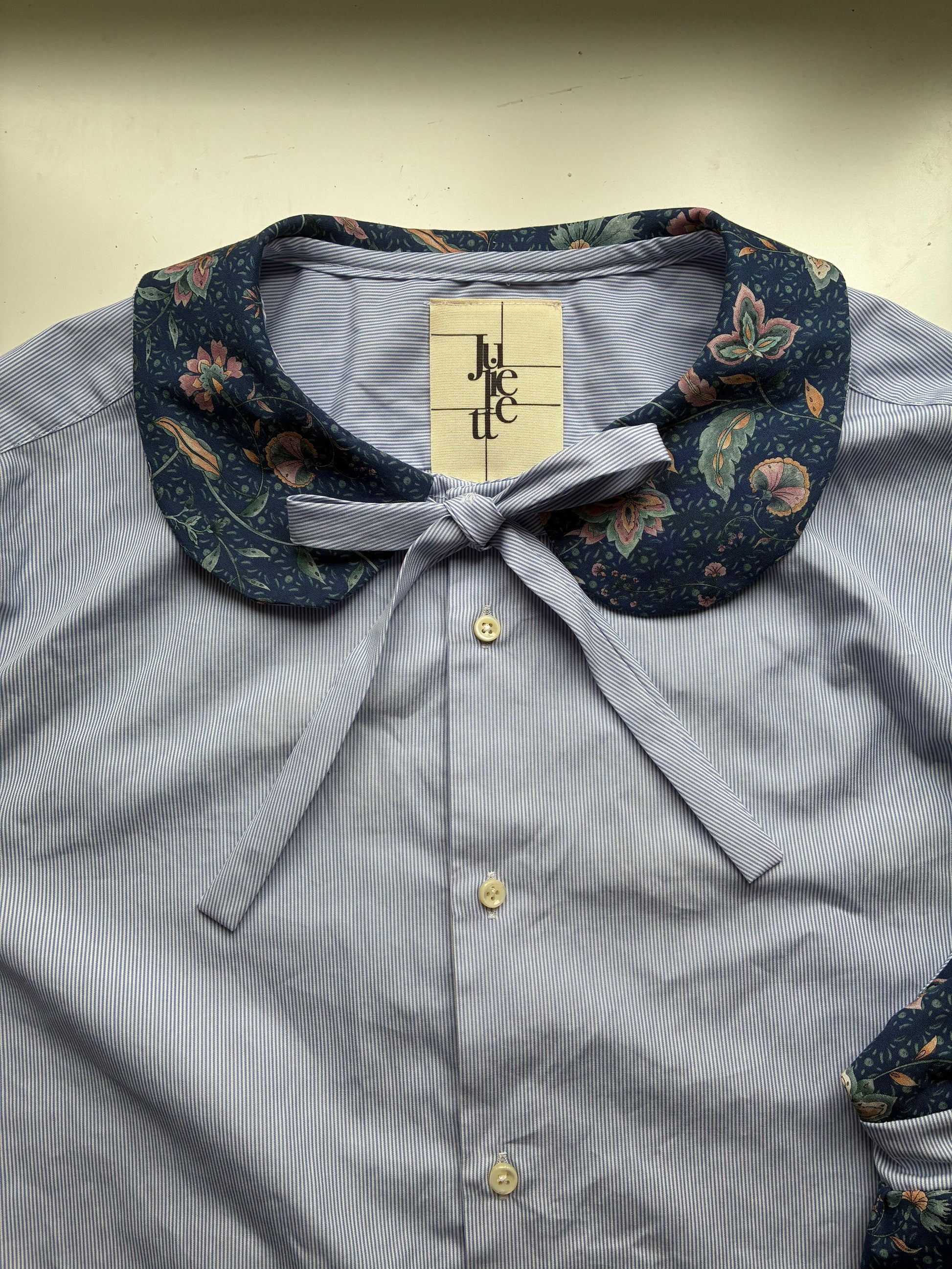 Col Claudine aux motifs floraux cachemire agrémenté d’un joli noeud, manches sophistiquée donnant un charmant volume à l’ensemble de la chemise.🪡🎀