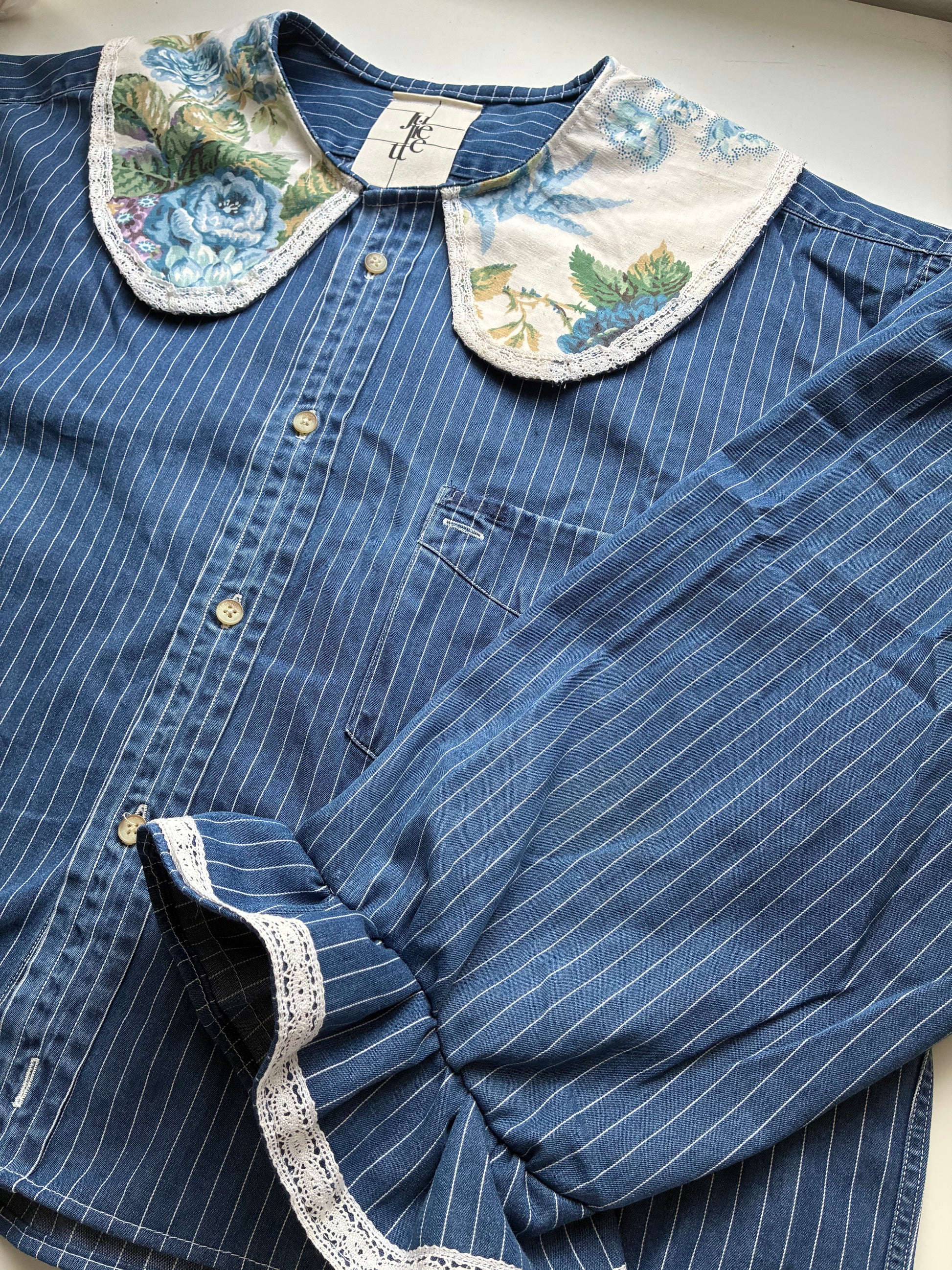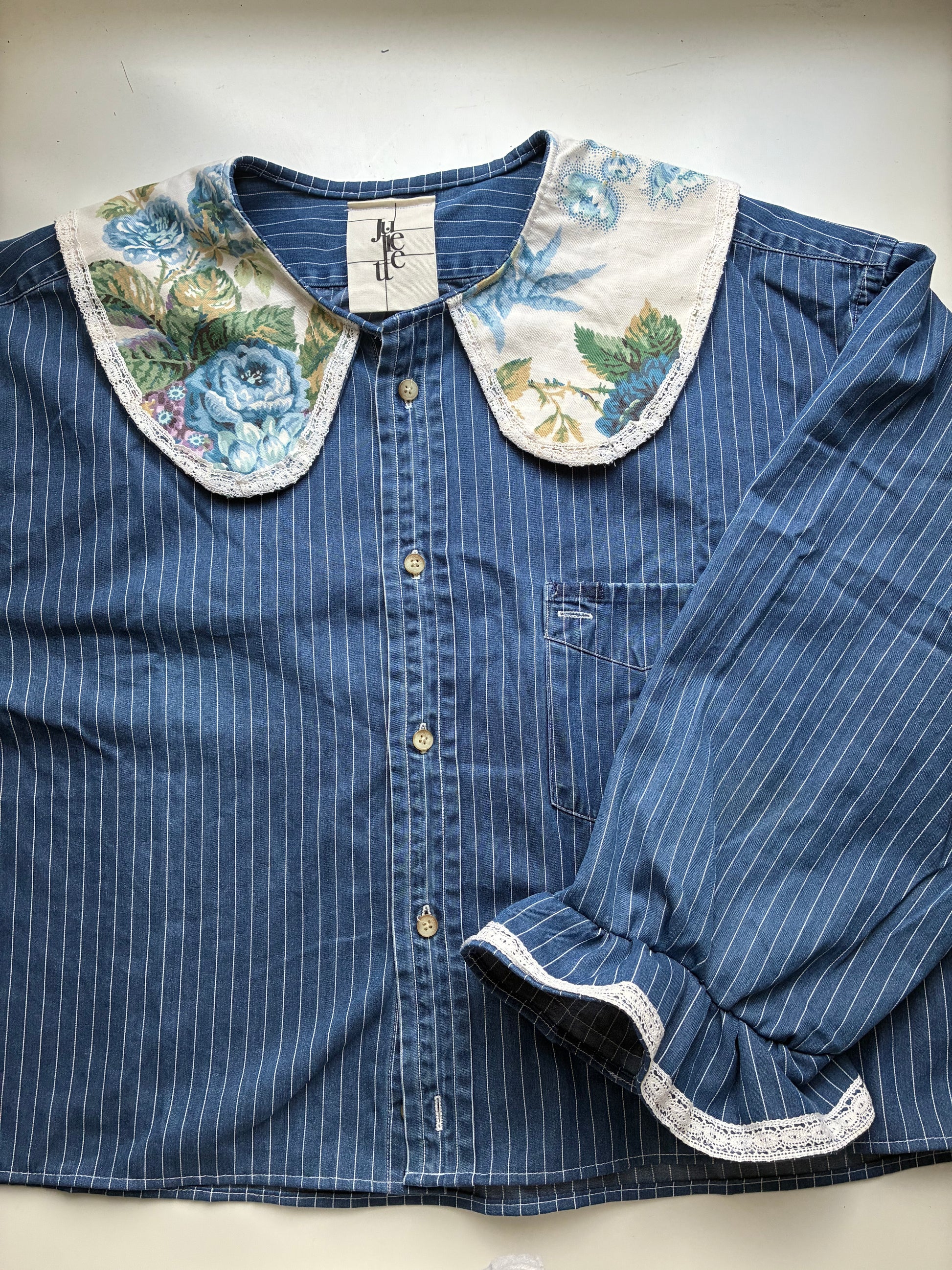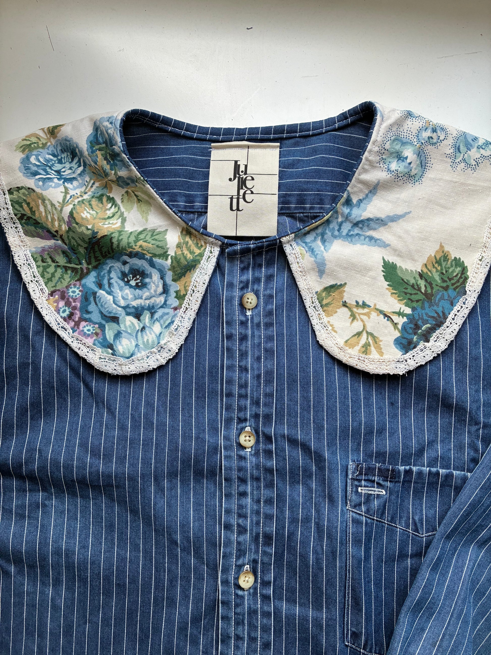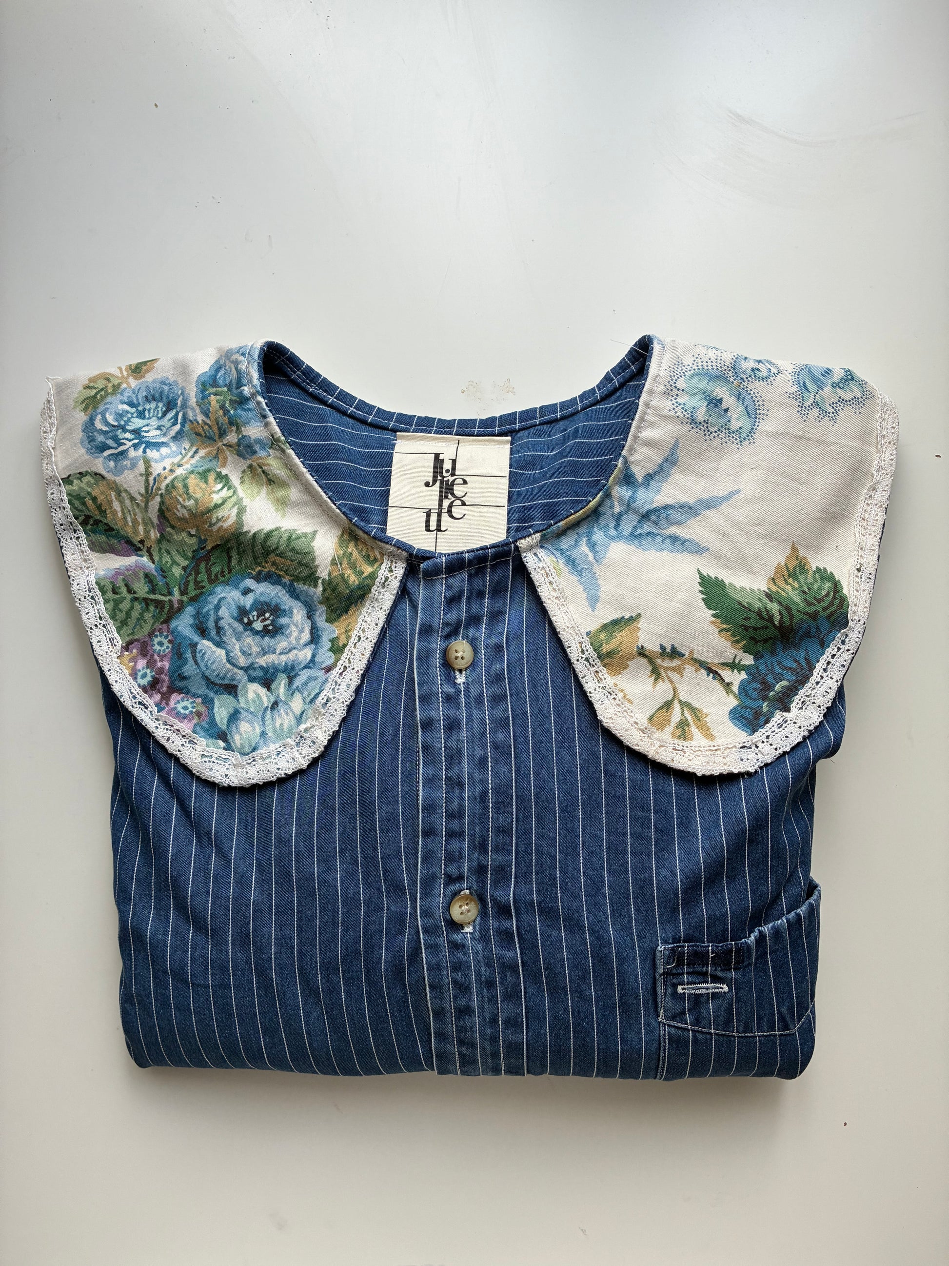 Col Claudine aux motif floraux vintages agrémenté de dentelles.🪡🎀
