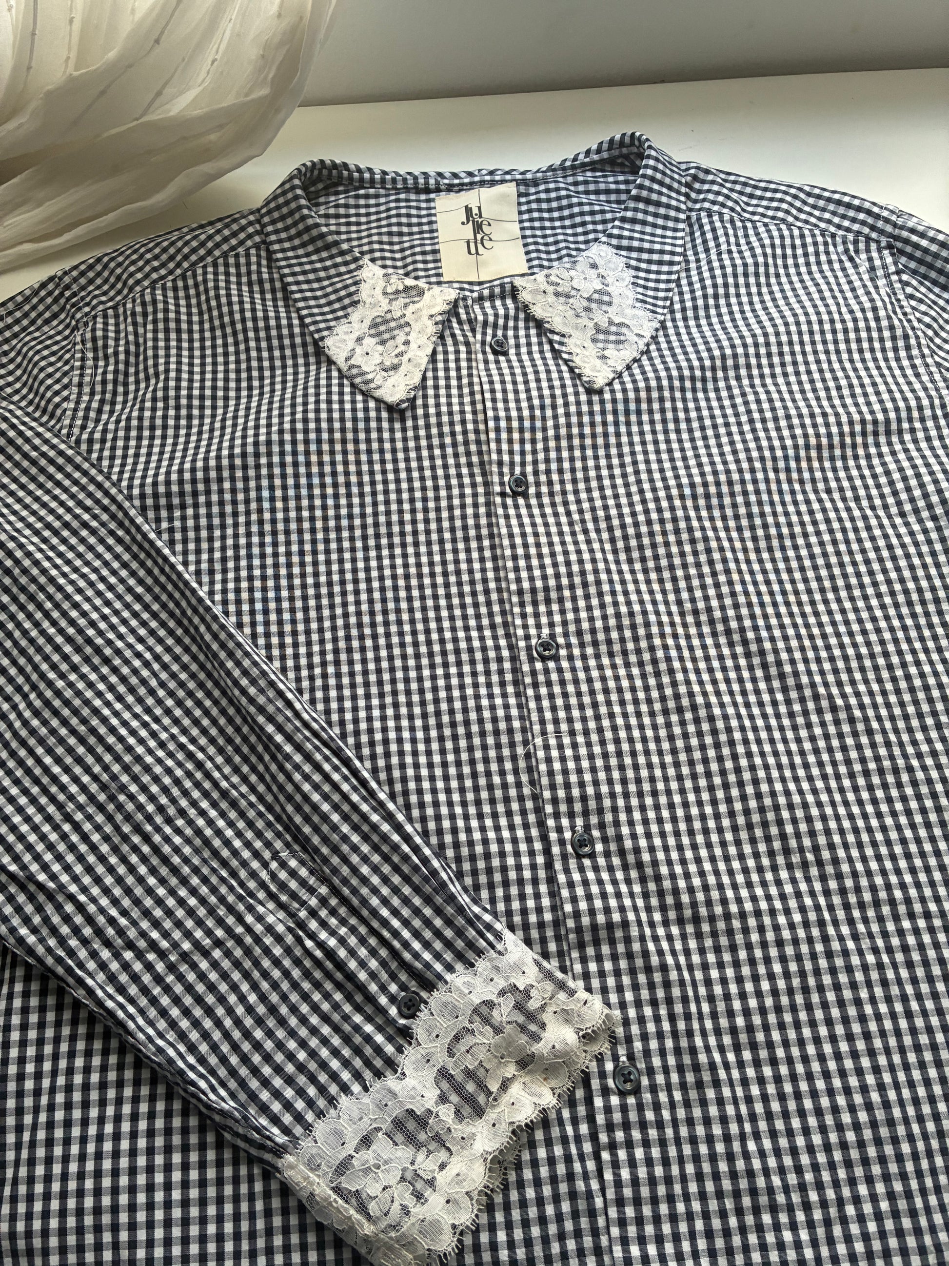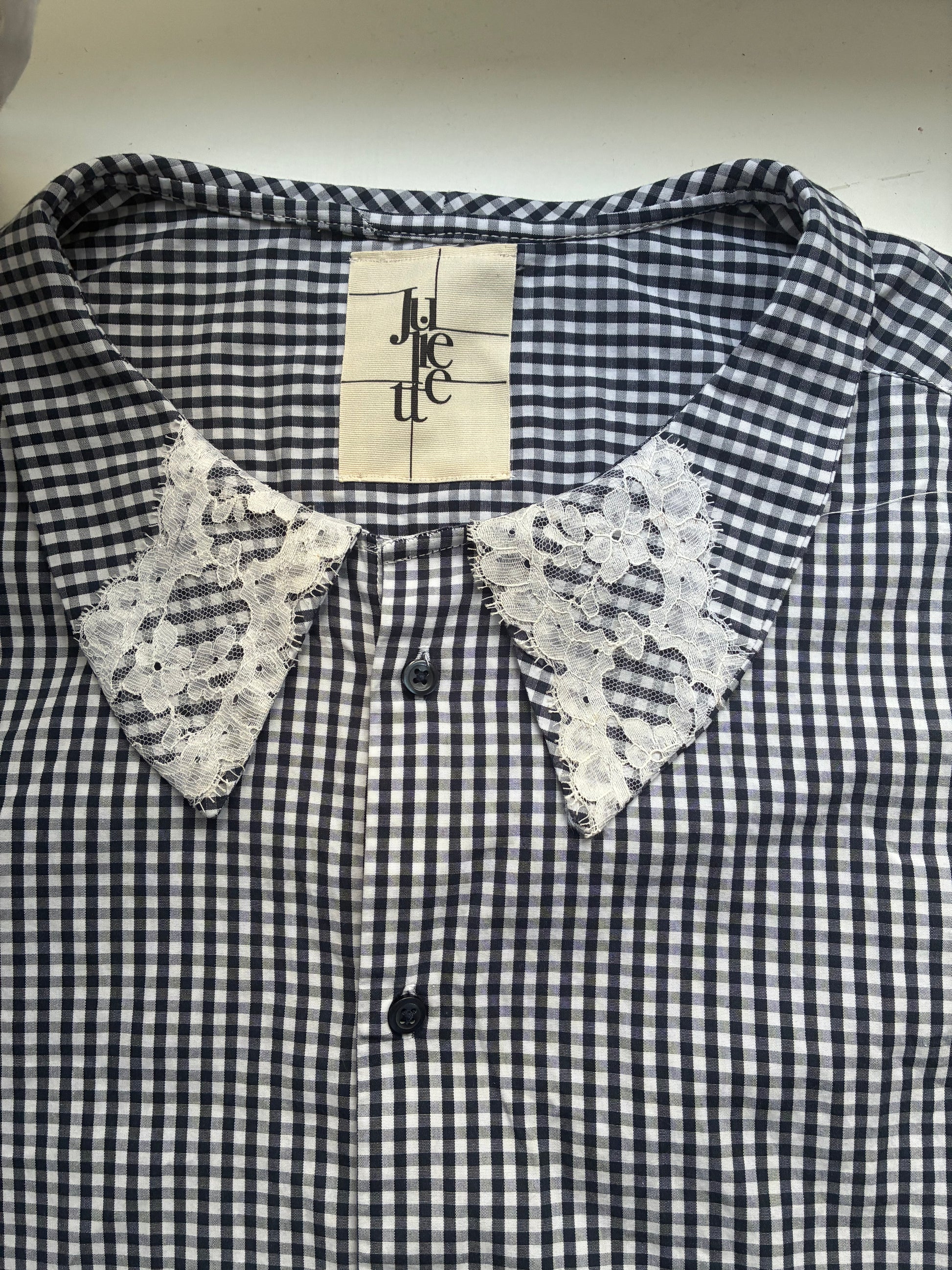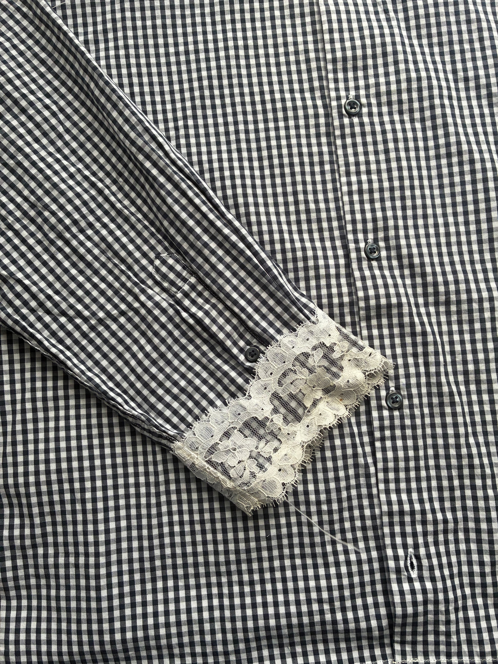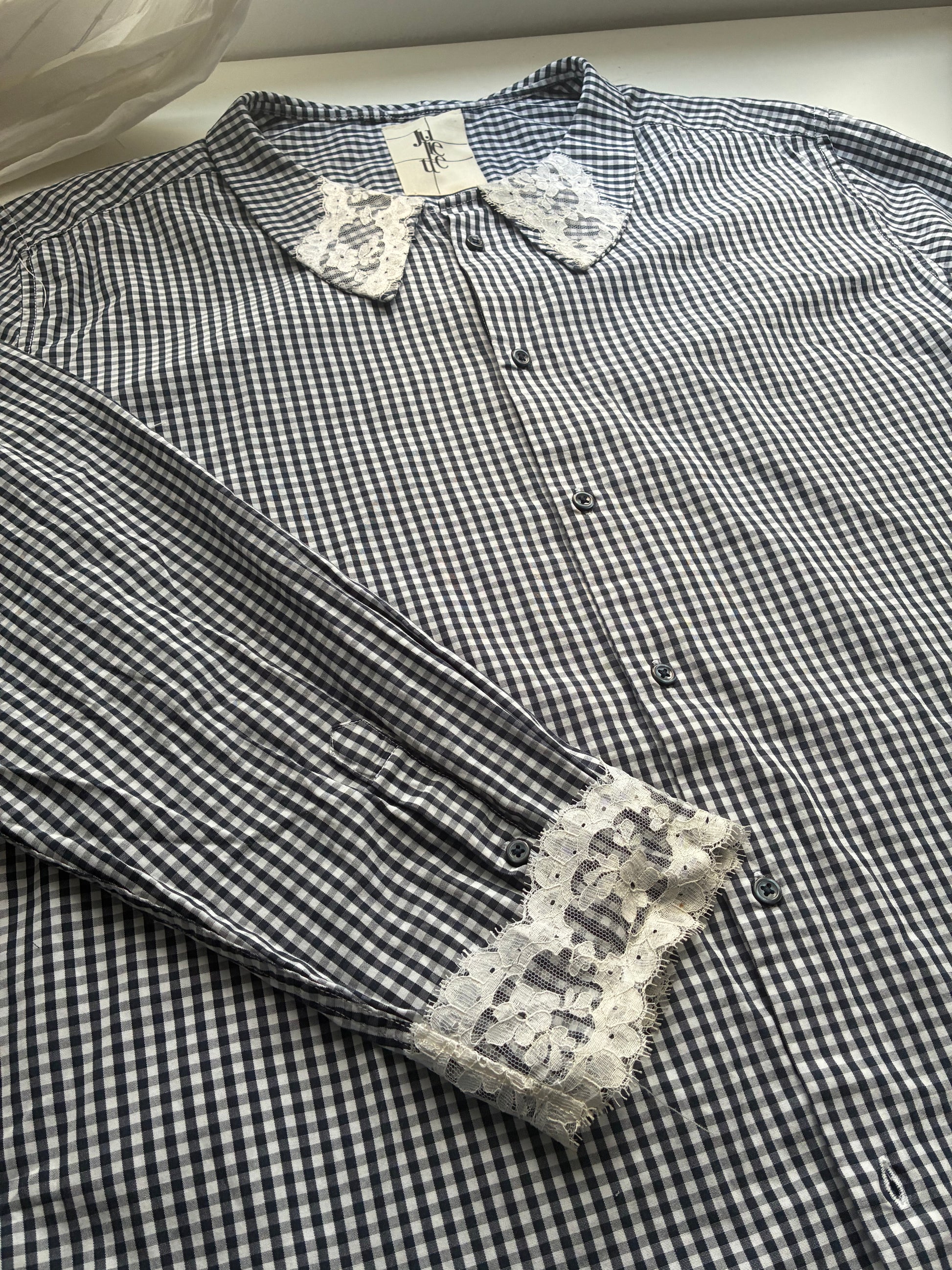 Chemise conçue à partir d’une chemise d’homme upcyclée et de coquettes dentelles.💕✨